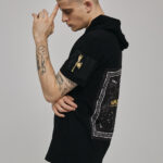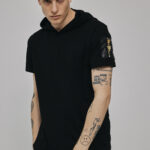 T-Shirt Basic i dość dopasowanym kroju z kapturkiem i kieszonką na rękawku zapinaną na suwak zakończony trójkątem z logo trójkat W to baza w każdej szafie Wanteda. T-shirt może stanowić samodzilny element górnego outfitu albo być bazą pod rozpinaną bluzę czy parkę. Świetny i przyjemny w dotyku material idealnie sprawdza się na gołe ciało w ciepłe dni. Na plecach naszyta bandana.